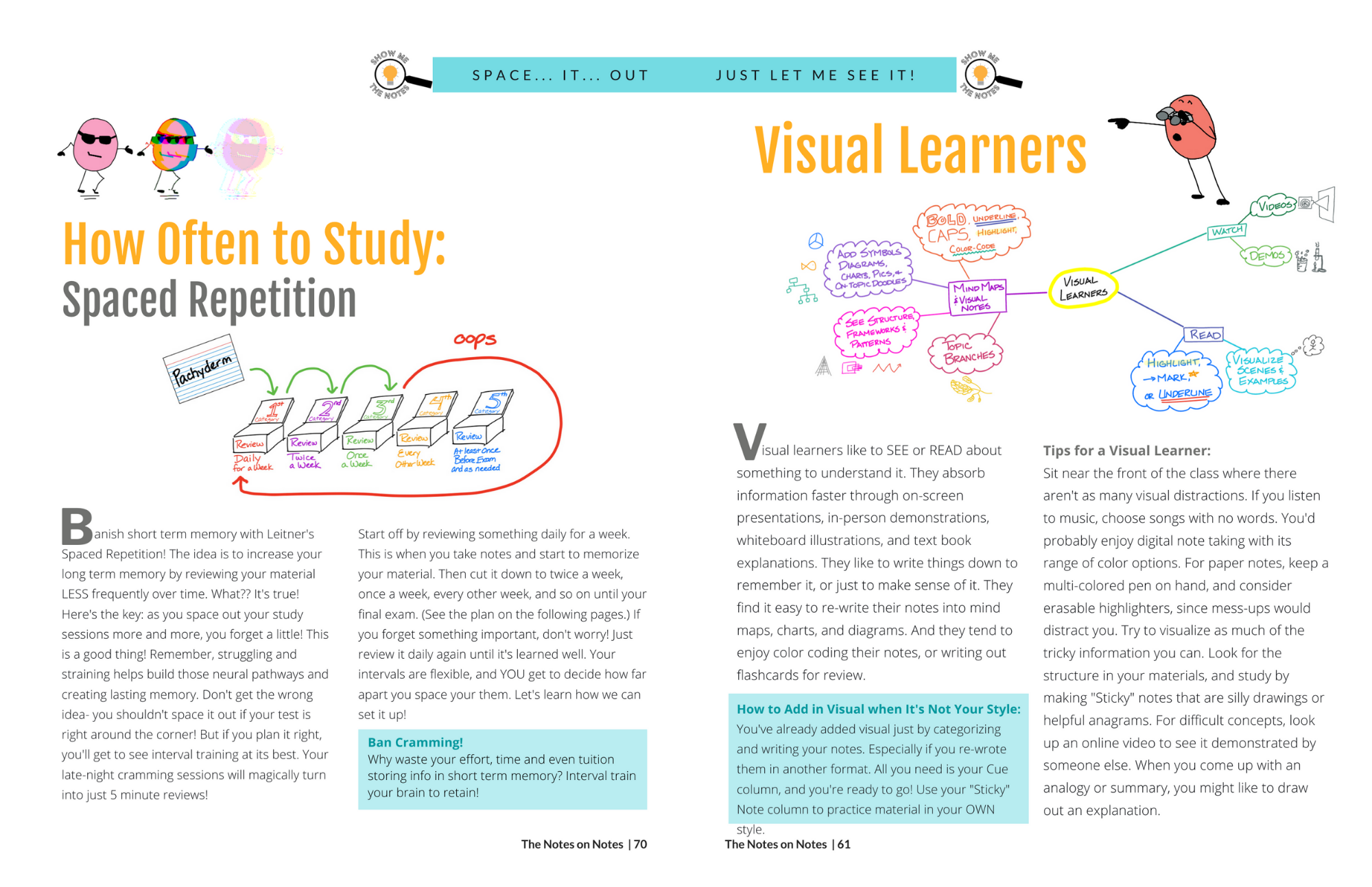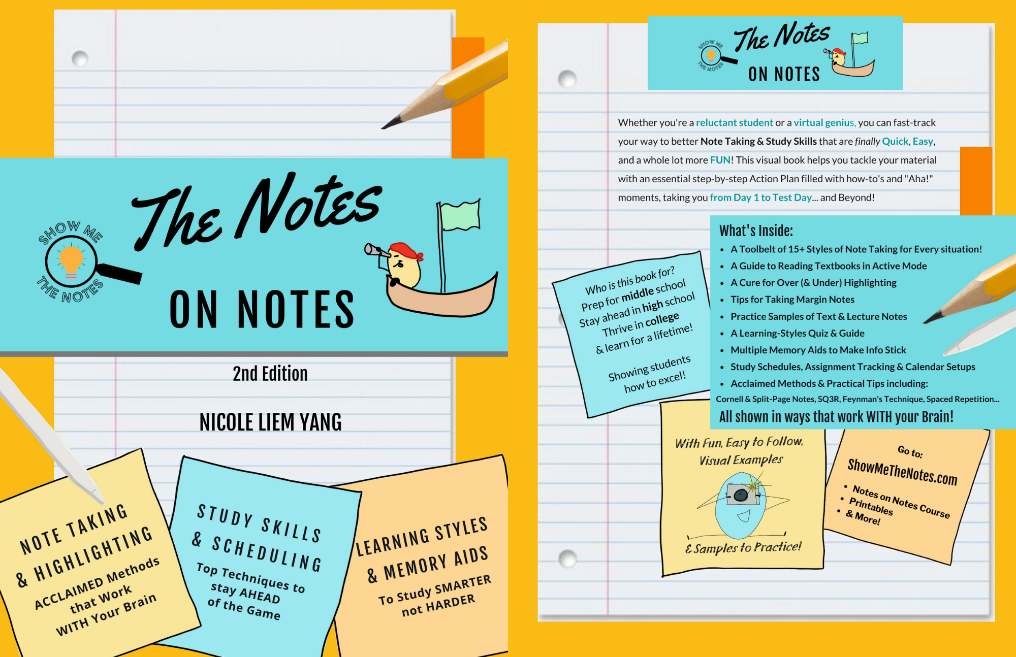 Available Now - Newly expanded and updated with fun and easy to follow visual examples throughout. Dive into 85 full-color pages of quick tips, how-to’s, and acclaimed methods. Both reluctant students and virtual geniuses will fast-track their way to better Note Taking & Study Skills that are finally quick, easy and a whole lot more fun! The Notes on Notes will take you from Day 1 to Test Day, and Beyond!